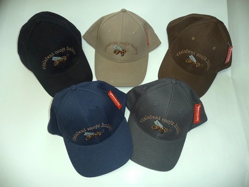 Slušivá kšiltovka s výšivkou "Včelaření moje hobby". Vhodná jako dárek. Jedna velikost.